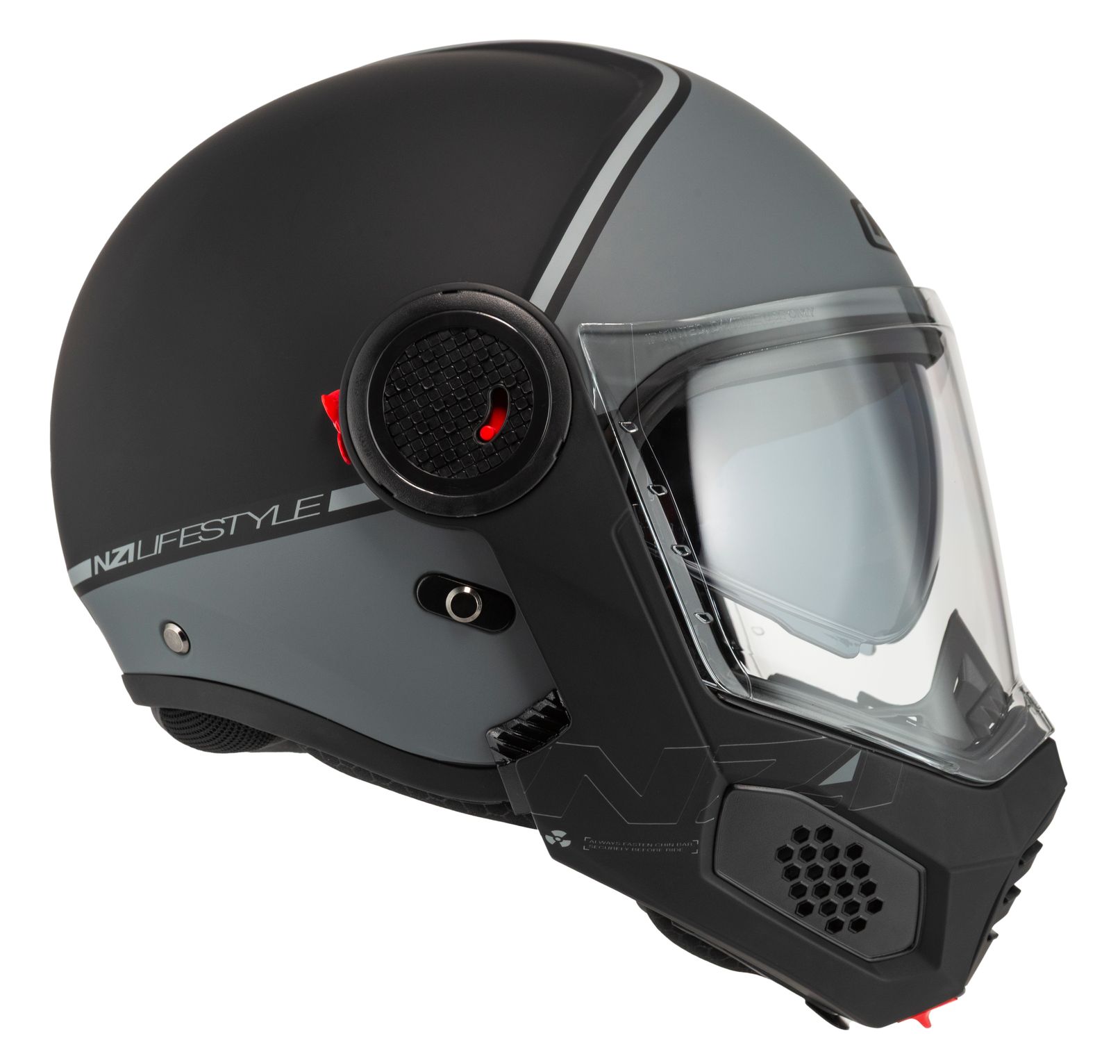 Die clevere Klappkonstruktion ermöglicht es Ihnen, einfach zwischen Integralhelm und Jethelm zu wechseln.