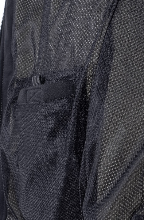 - 2 offene äußere Taschen mit 2 Brusttaschen mit Reißverschluss.