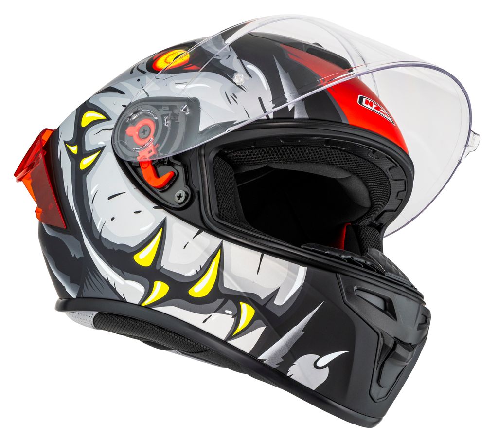 Dieser Integralhelm wurde für dich entwickelt, der eine perfekte Kombination aus sportlichem Design, Komfort und Sicherheit im Alltag sucht. Mit seinem aggressiven und modernen Schalendesign hebt er sich von der Masse ab und ist die ideale Wahl für dynamische Fahrer, die gesehen werden wollen – sowohl optisch als auch im Straßenverkehr.